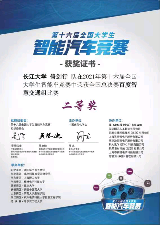 2021年的比赛分为两大类,一是竞速类、二是创意类。在电信学院的大力支持和指导教师郑恭明副教授的悉心指导下,由四名研究生和一名本科生组成的“倚剑行”智能汽车团队,参加了创意类的百度人工智能创意赛,团队经过多轮理论知识培训,车模结构持续优化,程序代码不断更新换代,车模运行更加快速稳定。备战过程中,团队的整体专业水准、协作能力、心理素质不断增强,助力团队成员在总决赛赛场上赛出长大速度与精神。