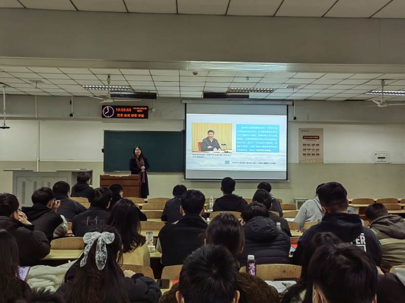 刘书记首先以“世界怎么了,我们怎么办”这一时代之问引出本次形势与政策课的主题《为开创中国特色大国外交新局面》,然后从“进入新时代中国外交取得新成就”、“引领新征程习近平外交思想成为中国外交新指南”、“应对大变局中国外交开创新局面”三个方面展开。她用元首外交、抗疫外交、国际朋友圈、人类命运共同体四项实例讲述了中国外交牢牢把握推动民族复兴、促进和平发展这条主线。最后刘书记鼓励电信学子,不管遇到怎样的艰难险阻,面临怎样的沟壑丛林,勤奋努力学习,胸怀远大理想,夯实过硬本领,在习近平新时代中国特色社会主义思想和习近平外交思想指引下,为实现中华民族伟大复兴不懈奋斗,为促进世界和平发展做出应有的贡献!
