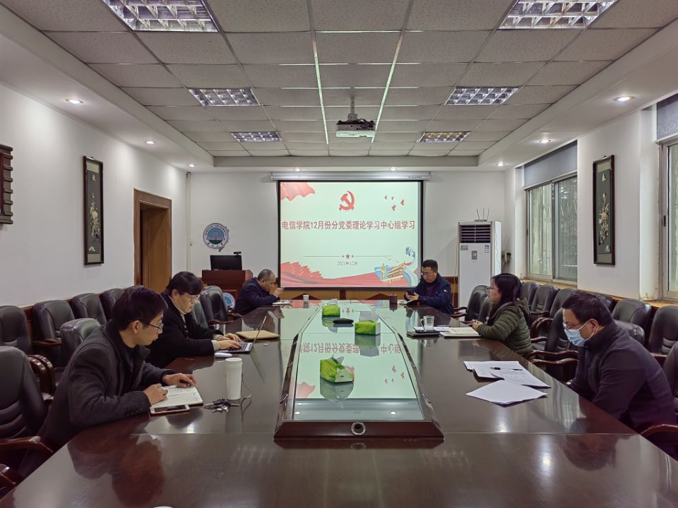 12月13日下午,电信学院分党委理论学习中心组在10教205会议室组织集中学习,本次学习由分党委书记刘逸主持,采取线上线下结合的方式,中心组全体成员参加学习活动。