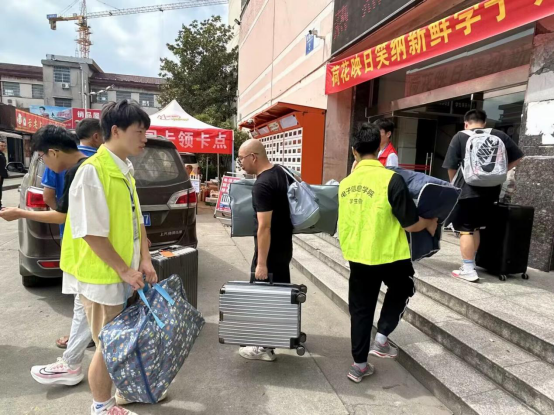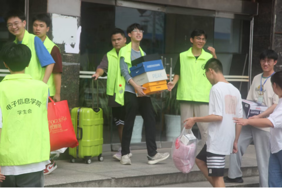 2日上午,电信学院的迎新志愿者们早早就在新生报到处和宿舍楼前集结完毕,他们准备充分、热情高效,以最周到的服务和最贴心的关怀,迎接来自五湖四海的新生。