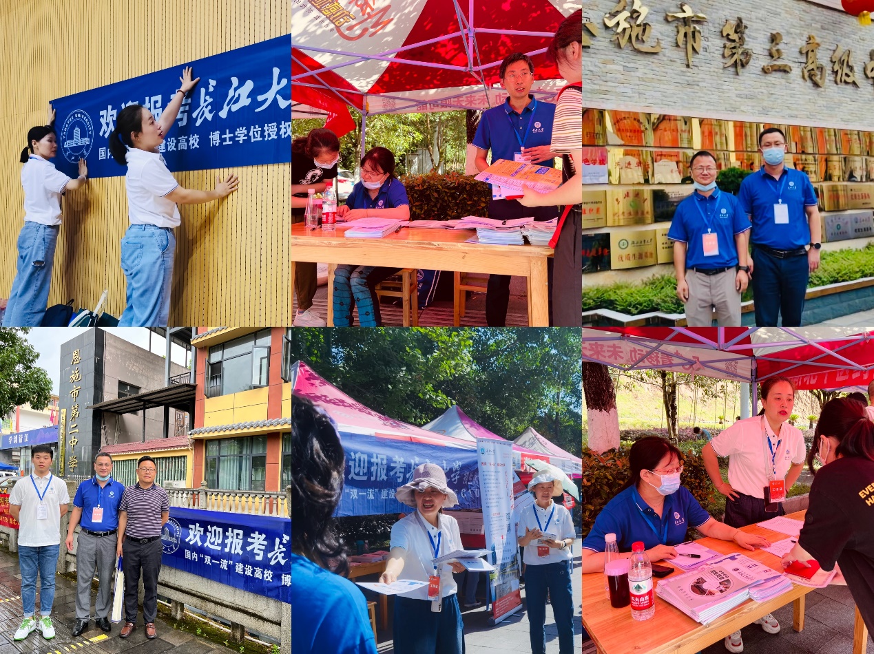 在恩施,各工作小队顶着烈日、冒着骤雨、耐着酷暑奔赴市内6所高中,向广大考生发放招生宣传册等材料,积极宣传公司的办学条件、办学特色、优势和成果,并围绕广大考生和家长关心关注的热点问题进行了耐心解答,如公司本年度招生计划、历年招生分数线、各学科特色等情况;还建立了QQ招生咨询群,在群内分享公司的招生政策等文件精神,设专人负责解答考生及考生家长关于专业报考的相关问题,指导考生和家长进行志愿填报,拓宽了招生宣传覆盖范围和后期效果。