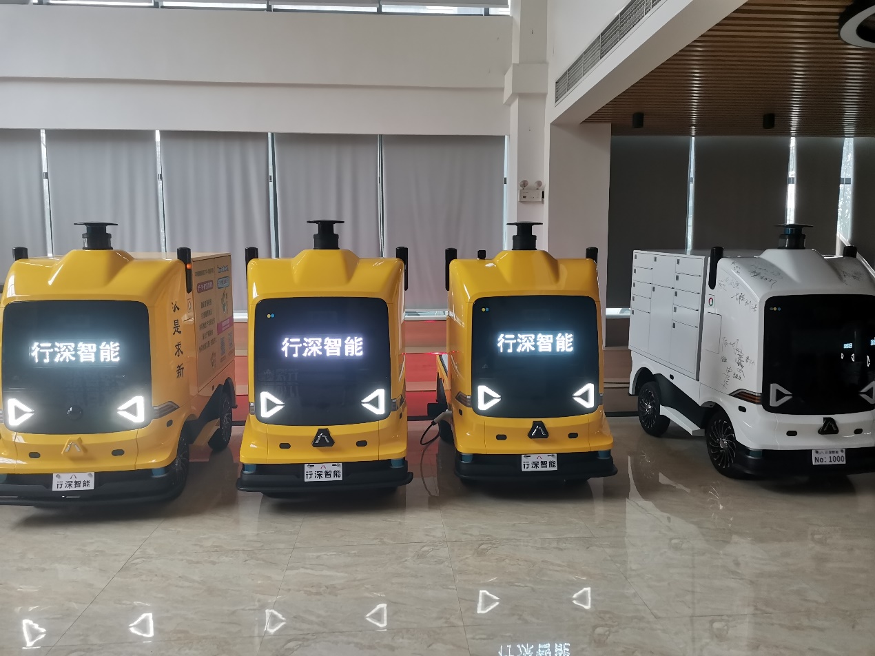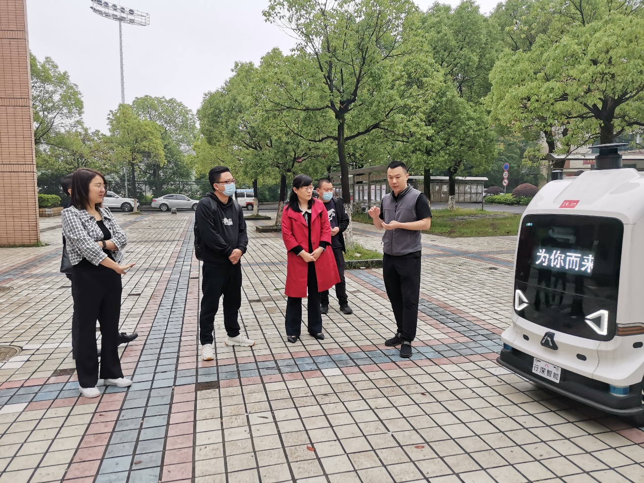 随后,双方在湖南城市学院现场参观了行深智能智慧校园应用经典案例之一——无人驾驶小车。目前行深智能无人配送车已经进入全国四十多所高校提供无人配送服务,包括快递无人配送、零售商品无人配送,员工只需手机下单即可预约取件,大大缓解了员工排长队集中取快递现象。此外还有无人驾驶校园防疫消杀车,旨在助力打造安全、有序的智慧校园。
