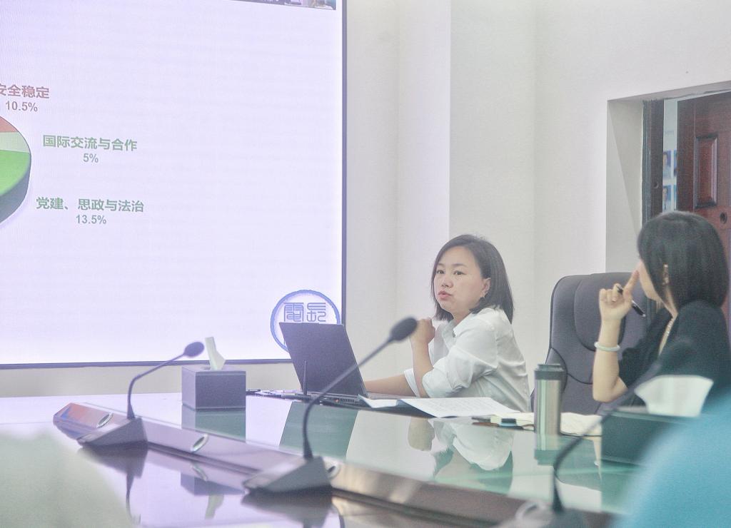 党委副书记张晨露围绕“如何将员工工作融入人才培养全过程”阐述对学院员工工作的思考。她介绍了学院员工工作团队和员工工作品牌建设情况,围绕党建引领、学风建设、生涯规划等方面,突出了员工工作抓牢主线、围绕中心、服务大局的目标追求,并阐明了下一阶段努力的方向。