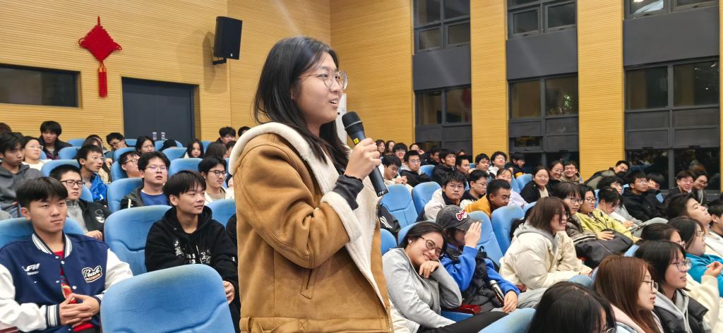 “怎样才能加入经理的实验室?”“人工智能专业知识面广泛,您建议主攻哪个方向?”在“我与经理面对面”交流环节,同学们热情高涨,纷纷举手提问。罗经理仔细聆听、耐心解答,会场欢笑声和掌声不断。
