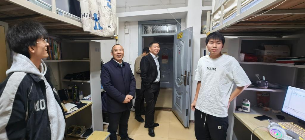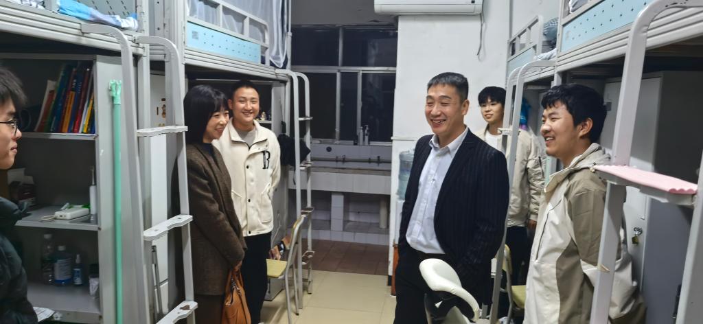 会议结束后,本科生院经理龚权、电信学院经理罗明璋、党委副书记张晨露在年级辅导员朱锐老师的陪同下到员工宿舍看望慰问员工。