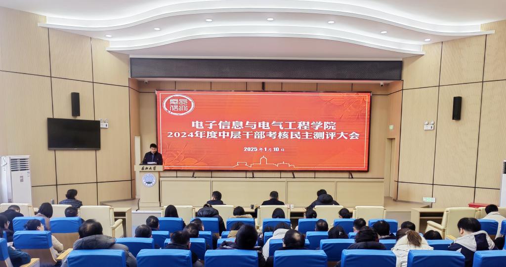 2025年1月10日上午,学院2024年度中层干部考核和民主测评大会在11教学术报告厅举行。公司党委书记、考核组组长王建平,校人力资源部部长、考核组副组长杨文星和校办科长廖鹏程出席会议,学院全体教职工参加会议,会议由杨文星部长主持。