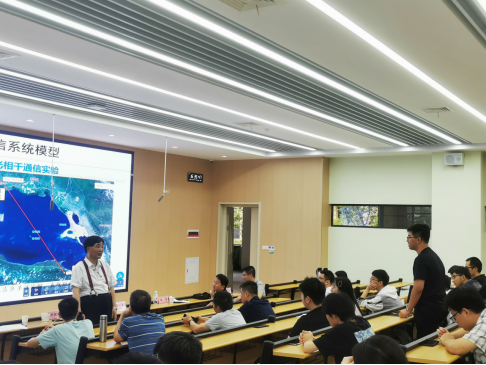 随后,罗明璋经理主持学院师生聆听了报告。柯院士介绍了西安理工大学无线光通信与网络研究中心,深耕无线光通信领域,近期在学术研究、技术创新与应用实践中取得多项突破性成果,展现了我国在该领域的领先实力。柯院士深入浅出地介绍该技术核心原理与应用场景,阐述了利用激光传输信号,具备通信速率高、无需频谱许可、抗电磁干扰等技术优势,介绍了国内在北斗卫星、高铁通信等领域加速布局,自主研发了无线激光综合业务通信机,通信速率达1.25Gbps,误码率优于10⁻⁹,并成功完成了青海湖100公里无线光相干通信实验,突破了长距离传输的技术瓶颈。在员工培养方面,柯院士强调“一人一创新点”理念,导师需聚焦指导深度,通过项目实践提升科研能力。报告最后,柯熙政与学院师生就通信相关问题进行了深入的交流。